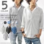 シャツ メンズ 七分袖 七分シャツ ブロード オックス ボタンシャツ 無地 ストライプ コットン スリム ショート丈 カジュアル キレイめ