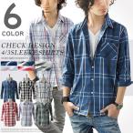 シャツ メンズ デニムシャツ チェックシャツ 七分袖 ウエスタンシャツ インディゴ ボタンシャツ スリム カジュアル