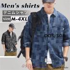 デニムシャツ メンズ 長袖 アメカジ チェック柄 カジュアル 開襟 ジャケット コート 柔らか ゆったり 大きいサイズ おしゃれ ストリート系 上品