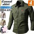 シャツ メンズ カジュアルシャツ 長袖 ミリタリー トップス カーゴ ボタンダウン 開襟 野外作業 アメカジ おしゃれ 薄手 スリム 着痩せ 春秋