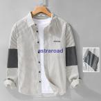 シャツ ストライプシャツ 英字刺? カジュアルシャツ トップス 切り替え袖 春物 春服 メンズ 夏
