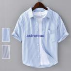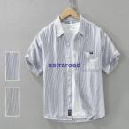 綿シャツ メンズ ストライプシャツ カジュアルシャツ トップス 100%コットン シャツ 半袖 夏