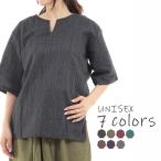 シャツ エスニック カラパナトップス ネパール 5分丈 メンズ レディース ユニセックス アジアン 0510 M
