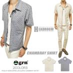 シャツ カジュアルシャツ メンズ 半袖 grn ペイズリー モノグラム 開襟オープンカラー ジャガード シャンブレーシャツ