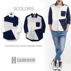 カジュアルシャツ メンズ 3カラー切替ブロッキング7分袖パナマシャツ