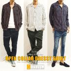 開襟オープンカラーシャツ カジュアルシャツ メンズ ストライプ長袖シャツ