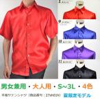 サテンシャツ 半袖 4色 XXS〜3Lサイズ ワイシャツ ドレスシャツ サテン生地 ステージ衣装 ダンス衣装 舞台衣装 忘年会 新年会 27sh01h