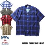HOUSTON ヒューストン 40988 OMBRE CHECK S/S SHIRT オンブレチェック半袖シャツ オープンカラー 開襟シャツ メンズ レーヨン