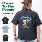 POWER TO THE PEOPLE パワートゥザピープル 麻ライク ビール刺繍 半袖シャツ オープンカラーシャツ メンズ 送料無料 6501023