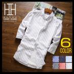 2枚目半額 セール カジュアルシャツ ストライプシャツ メンズ 七分袖 ボタンダウンシャツ ストライプ柄 カジュアル 薄手 形態安定加工 スリム 春夏