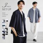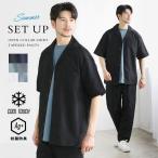 【上下2点セット】 セットアップ オープンカラーシャツ テーパードパンツ メンズ 夏 接触冷感 半袖 シャツ