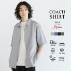 シャツ メンズ 夏 接触冷感 レギュラーカラー コーチジャケット 半袖 5分袖 リネンライク Reflax