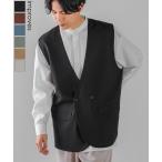 ラグジュアリーメロウ ノーカラーベスト メンズ とろみ ダブル ジレベスト ワイドシルエット オーバーサイズ ゆったり 大きいサイズ シンプル カジュアル
