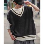 ニット ベスト Vネック ビッグシルエット ゆったり 大きいサイズ ざっくり 畦編み メンズ