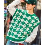 ニットベスト メンズ 千鳥格子 ハウンドトゥース カラーニット オーバーサイズ 大きめ きれいめカジュアル モード ストリート 韓国ファッション