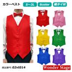 カラーベスト 蝶ネクタイ付き S〜3L 6色 衣装 ステージ ダンス 演奏会 パーティー 制服 レッド ピンク イエロー グリーン ブルー パープル 02vt014