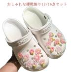 シューズチャーム に つける アクセサリー 靴 女の子 夜光 かわいい 蓄光 靴アクセサリー 飾り 12個セット 穴サンダル 穴サンダル 花 さくら