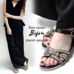 サンダル レディース ゴムストラップ 履きやすい 歩きやすい リゾート 40代 50代 ビジュー ビーチサンダル