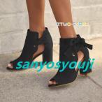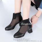 サマー夏ファッションブーツサンダルメッシュpuブラックローマ靴女性用太ヒール5.5cmブーツショートブーツレディース美脚通気2021夏作疲れない