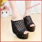 メッシュ レース 11cmオープントゥ サンダル レディース ウエッジソール 靴 ヒール 厚底靴 パンプス ハイヒール ミュール トングサンダル