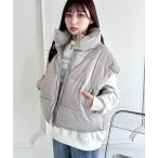 ダウンベスト ベスト 細コールボリューム襟ベスト レディース