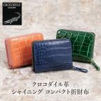 クロコダイル革・シャイニング コンパクト折財布 財布 折り畳み財布 二つ折り財布 ラウンドファスナー レディース 女性 婦人 ネイビー グリーン ピンク ワニ 鰐
