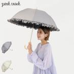 ピンクトリック pinktrick 日傘 完全遮光 長傘 軽量 晴雨兼用 雨傘 レディース 50cm 遮光率100% UVカット 遮熱 紫外線対策 リネン風フリル 爆買