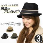 帽子 レディース フェルト サイズ調整 秋冬 リボン アシメブリム中折れハット