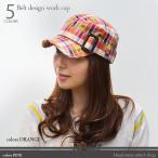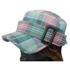 ワークキャップ メンズ 帽子 チェック バックル付(ピンク×グリーン) レディース ワークキャップ 春夏 秋冬