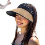 サンバイザー レディース 麦わら調サンバイザー UVカットレディースハットフリーサイズ つば広 小顔効果 ブラウン