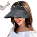 サンバイザー レディース 麦わら調サンバイザー UVカットレディースハット フリーサイズ つば広 ブラック