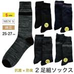 (メール便対応・・2セットまで) 2足組 銀イオン メンズ ソックス 抗菌防臭 25-27cm 綿混 紳士 クルー丈