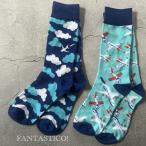 お得な2足セット★雲と飛行機柄ユニセックス靴下♪スケーターソックス プレゼントプチギフトお祝いグラフィックポップアート