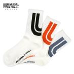 UNIVERSAL OVERALL ユニバーサルオーバーオール メンズ クルーソックス 3足セット コットン 綿 ポリエステル 靴下 バッグビッグUロゴ LU-354 爆買