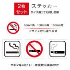 【2枚セット】「禁煙」喫煙禁止 標識掲示 ステッカー 3種類サイズ 7種類デザイン 背面グレーのり付き 屋外対応(stk-a001-2set)