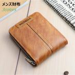 財布メンズ父の日二つ折りPU レザー ラウンドファスナー 復古 ショートウォレット大容量カド入れお札入れ軽量コンパクトファッション小物財布 プレゼント