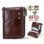 財布 メンズ 二つ折り 大容量 牛革 L字ファスナー スキミング防止素材 RFID対応 小銭入れ離脱可 ビジネス レザー さいふ