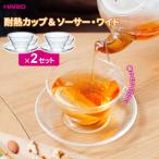 HARIO ハリオ 耐熱カップ&ソーサー・ワイド CSW-1T(×2セット) | カップ ソーサ― 耐熱 ガラス ペア 2人分 透明 コーヒー