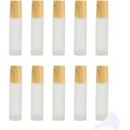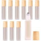ロールオンボトル 遮光瓶 アトマイザー アロマ 容器 精油 木目キャップ + 漏斗付き (クリア, 10ml x 10個)