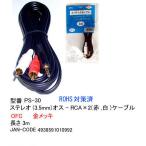 【PS-30】3.5mmステレオ - RCAx2(赤・白) 変換ケーブル 3m