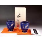 有田焼 陶芸家 藤井錦彩作 瑠璃釉金彩稲穂絵湯呑みペアセット