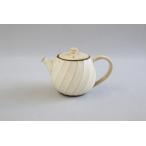 藍花 波佐見焼 ねじりポット アイボリー ステンレス茶こし付き(ギフトボックス入り)ワールドクリエイト/11470