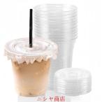プラスチックコップ 使い捨て(360ML/400ML)プラカップ 蓋付き クリアカップ ストロー付き 使い捨てカップ 漏れ防止紙 アイスコーヒー/炭酸飲料/ミルクティー/