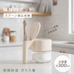 調味料ポット 調味料入れ スプーン付き 300ml容量 調味料 ガラス製 ストッカー ラック 塩 砂糖入れ 湿気防止 自動オープン 食品保存 保存容器 en-kt006-iv