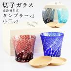 切子 グラスタンブラー 2個 ペアセット ブナ小皿付き 4点セット 桐箱入り (コバルト(紺)・赤・レイクブルー・インクブルー)食洗機対応
