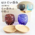 切子 ぐい呑み(お猪口) 2個 ペアセット ブナ小皿付き 4点セット 桐箱入り (コバルト(紺)・赤・レイクブルー・インクブルー)食洗機対応