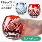 名入れ無料 切子 フリー グラス 2色から選べる 赤・インクブルー 食洗機対応 QD-568R/B 桐箱入り可能 彫刻名入れ ギフト