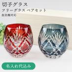 名入れ無料 切子 フリーグラス 2個 ペアセット 桐箱入り (赤・インクブルー) 食洗機対応 ギフト 父の日 母の日 敬老の日 彫刻名入れ