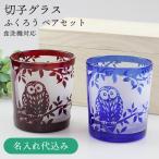 名入れ無料 切子 オールド ふくろう 2個 ペアセット 桐箱入り (赤・コバルト) 食洗機対応 ギフト 父の日 母の日 敬老の日 彫刻名入れ