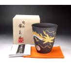 艶消し黒釉金彩唐草文様波渕焼酎カップA|有田焼 陶芸家 藤井錦彩作|桐箱入